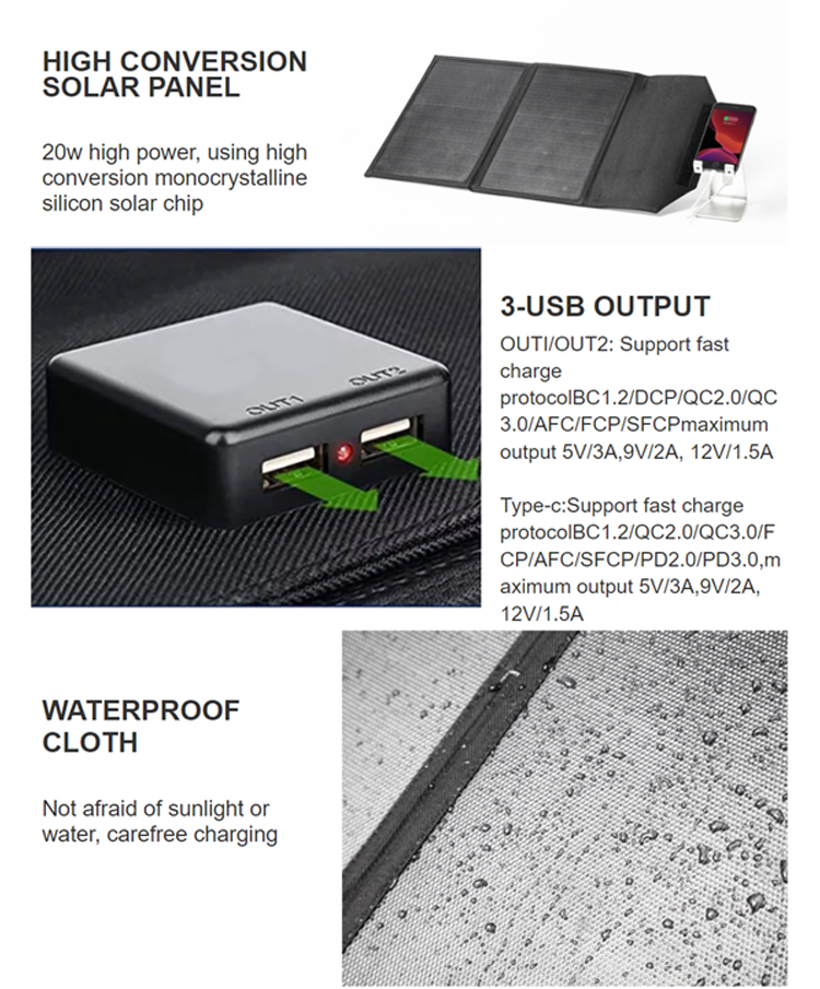 Portable Solar ChargerYuruMar 23, 20220 min readUpdated: May 10, 2022DescriptionMedium Size Portable Solar Panel ChargerItem No.AL69D0006Size11.42*7.48Inch(fold) 20.87*11.42Inch(extend)